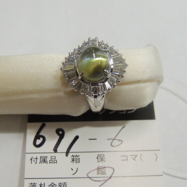 リング クリソベリルキャッツアイ Pt900 13.10g 中宝鑑 石目:C 6.00 D 0.14