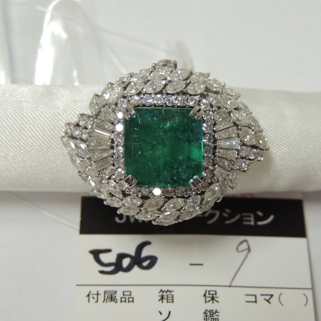 リング エメラルド ダイヤ Pt900 26.10g 中ソ 石目:9.59 D3.84