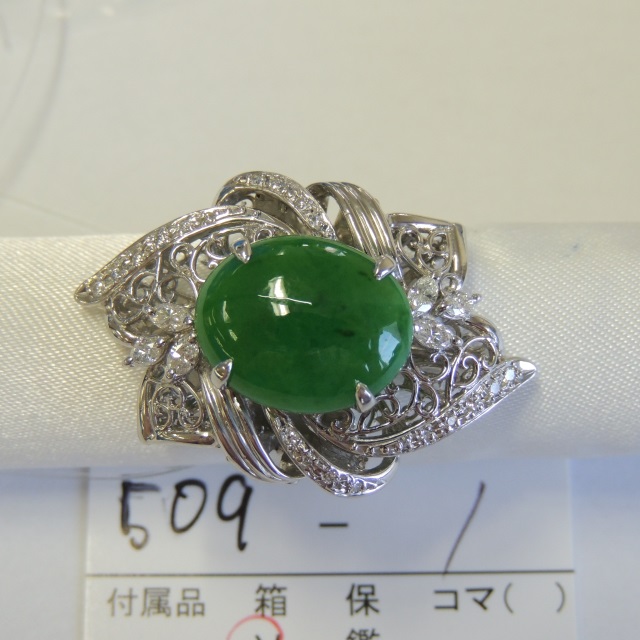 リング ヒスイ Pt900 20.80g 中ソ 石目:7.64 0.50