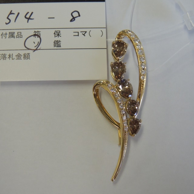 ブローチ ダイヤ FB-VS2~SI2 K18 8.20g 中ソ×5 石目:D3.35 D0.45