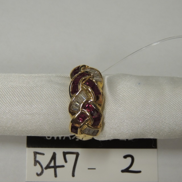 リング ルビー 2P石取 K18 6.90g 石目:R1.33 FD0.45