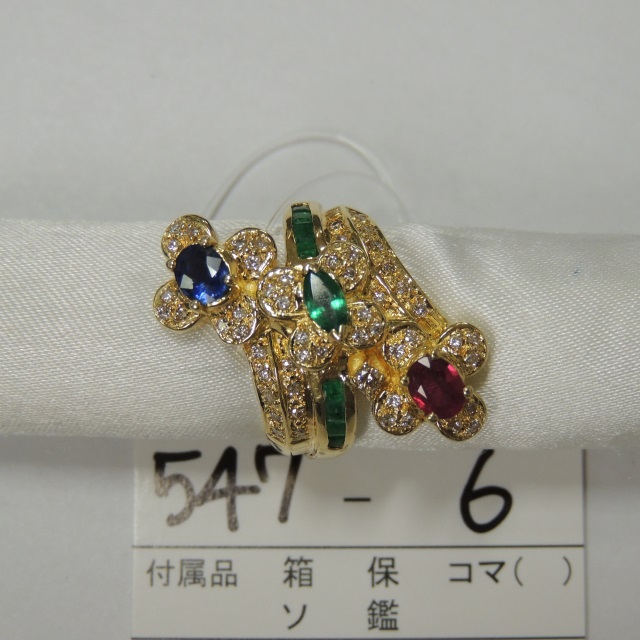リング エメラルド ルビー サファイヤ K18 11.30g 石目:E0.50 S0.48 R0.39 FD0.35