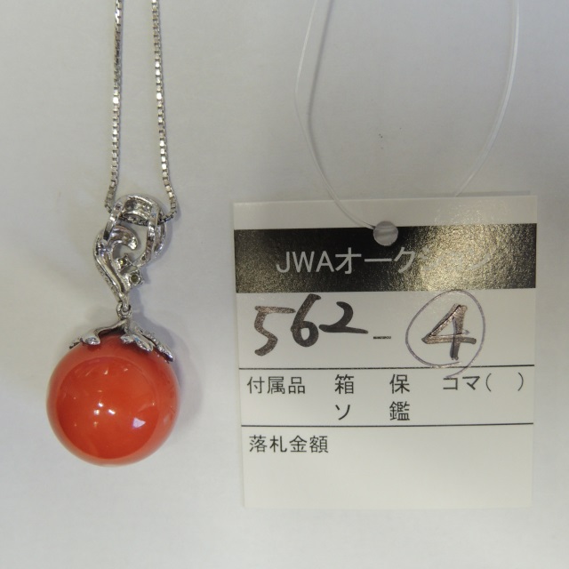田崎 ネックレス サンゴ ダイヤ 17.3mm Pt850/900 14.70g 石目:0.07
