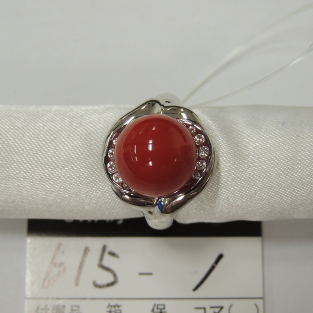 リング サンゴ ダイヤ 10.7mm Pt900 7.30g 石目:FD0.15