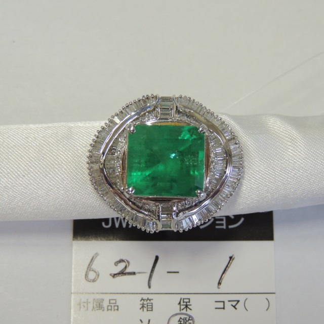 リング エメラルド ダイヤ Pt900 9.10g GRJソ 石目:E2.03 FD0.62
