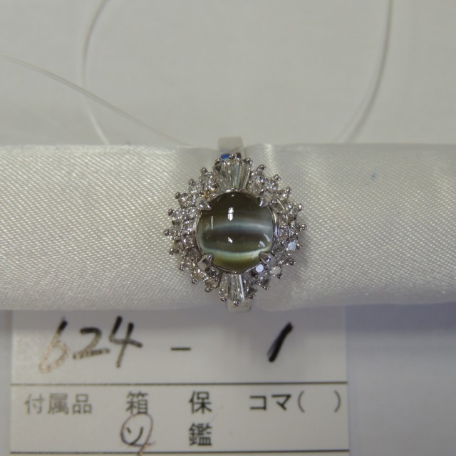 リング クリソベリルキャッツ ダイヤ Pt900 9.10g 中宝ソ 石目:C2.64 FD0.74