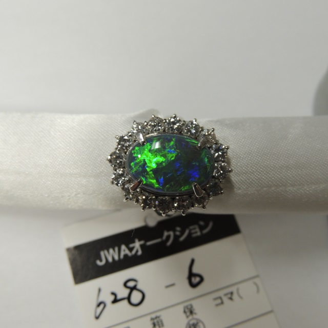 リング ブラックオパール ダイヤ Pt900 13.40g 鑑 石目:5.37 D1.83