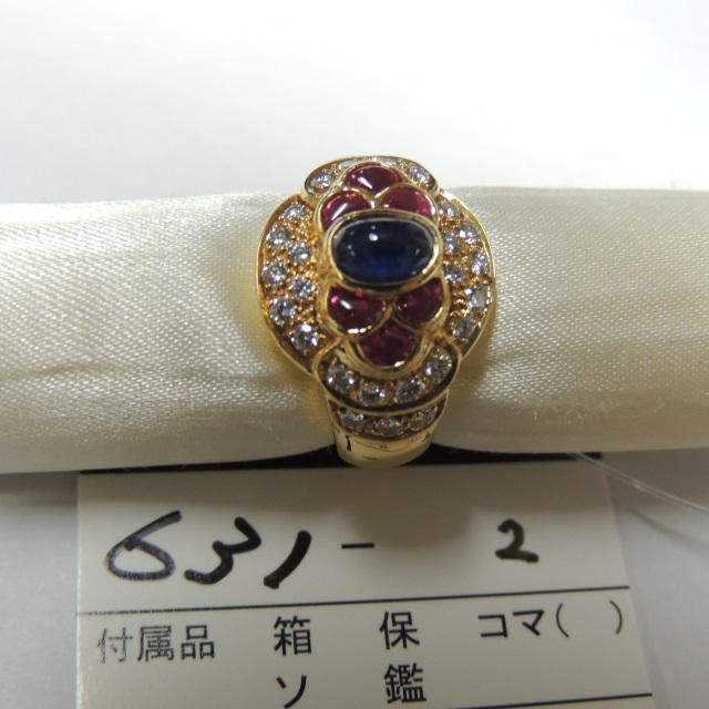 リング ルビー サファイア K18 9.20g 石目:R0.67 S0.82 D0.55