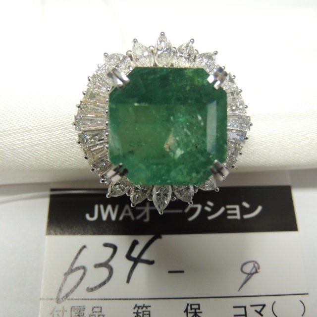 リング エメラルド ダイヤ Pt900 21.90g GRJソ 石目:E14.77 FD3.31