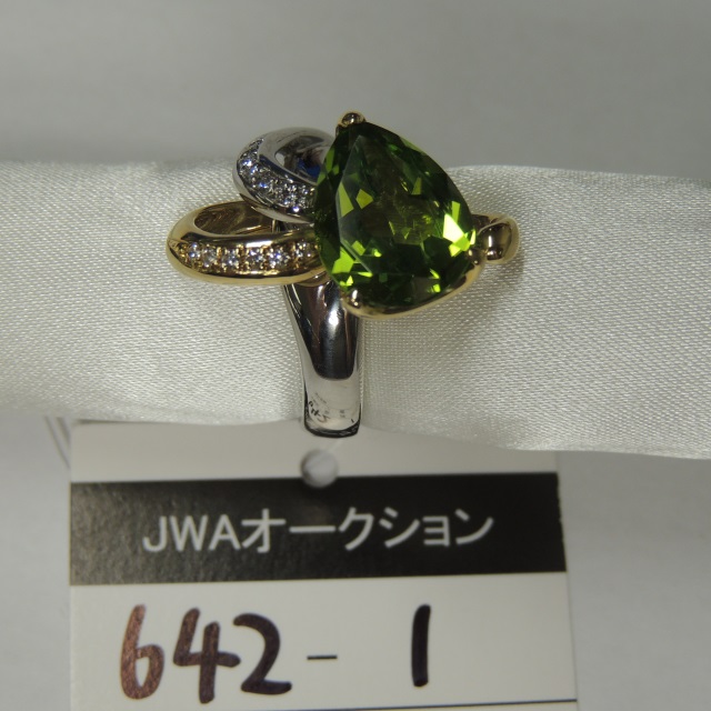 リング ペリドット ダイヤ K18/Pt900 20.30g 石目:5.748 0.12