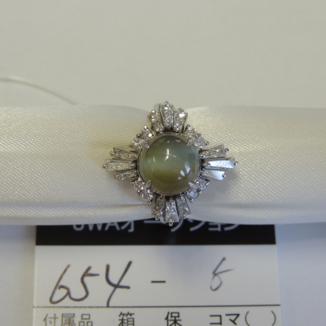 リング クリソベリルキャッツ ダイヤ Pt900 8.80g 中宝ソ 石目:C5.04 FD1.03