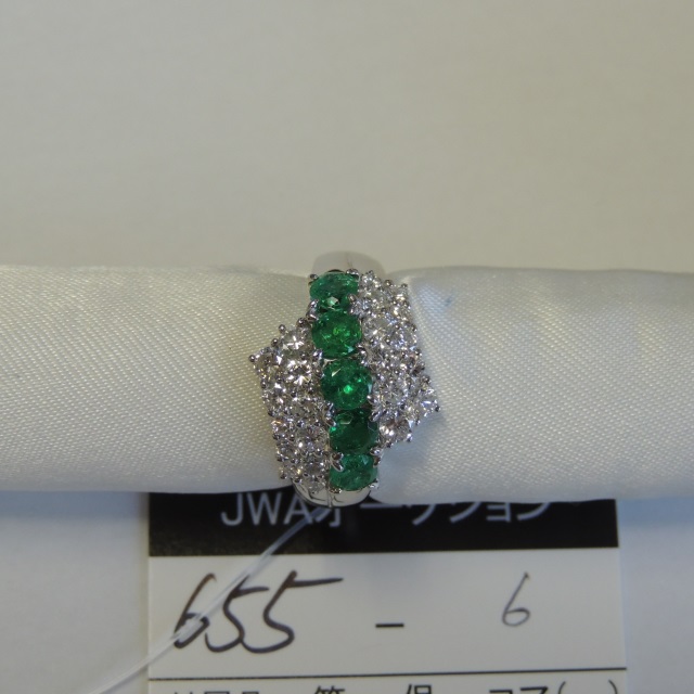 リング エメラルド ダイヤ Pt900 10.80g GRJソ 石目:E2.54 FD0.14