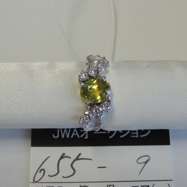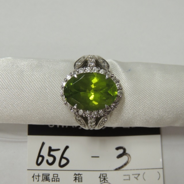 リング ペリドット ダイヤ Pt900 10.80g 鑑 石目:6.14 0.64
