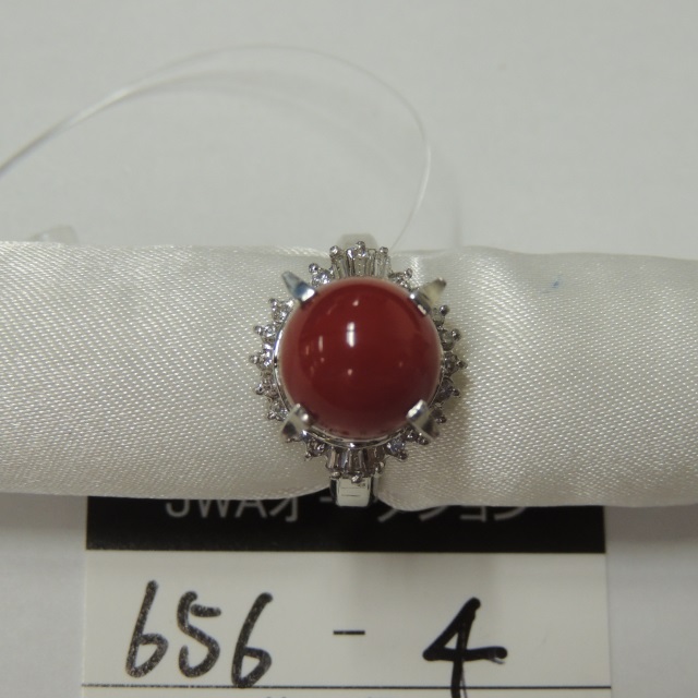 リング サンゴ ダイヤ Pt900 11.60g 石目:0.1
