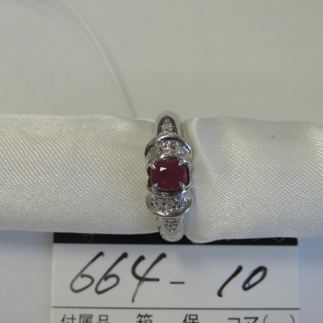 リング ルビー ダイヤ Pt850 6.40g 中ソ 石目:R0.81 FD0.41