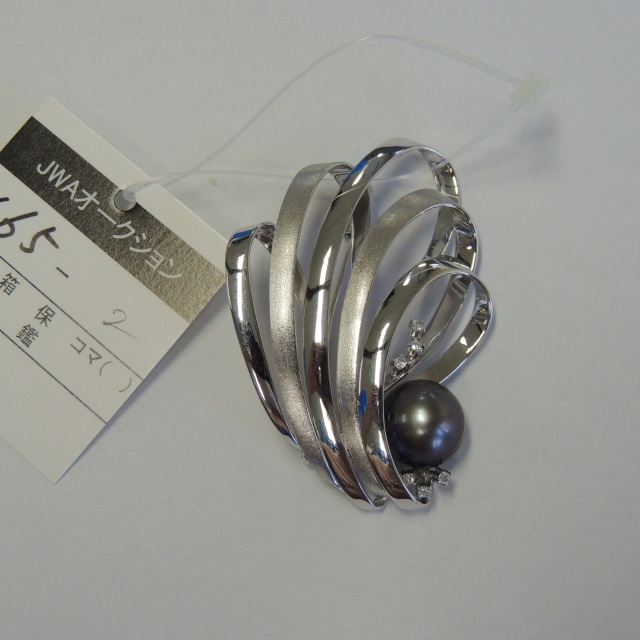 ブローチ パール ダイヤ K14WG 14.90g 石目:FD0.12