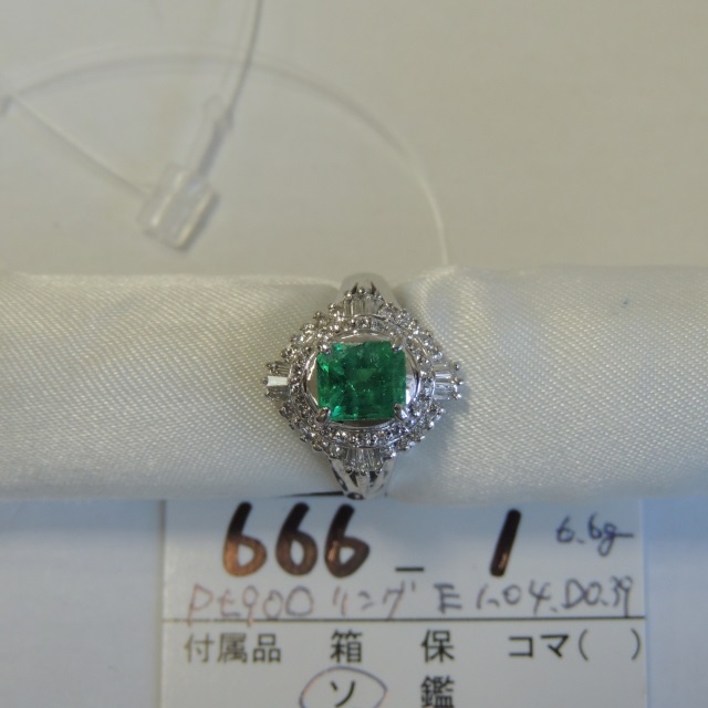 リング エメラルド Pt900 6.60g GGSJソ 石目:E1.04 D0.39