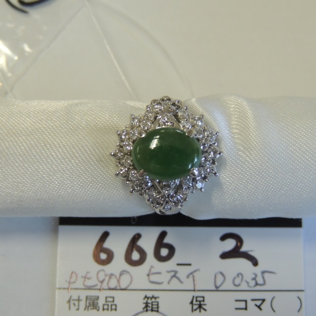 リング ヒスイ ダイヤ Pt900 8.00g 中宝ソ 石目:J2.50 FD0.77