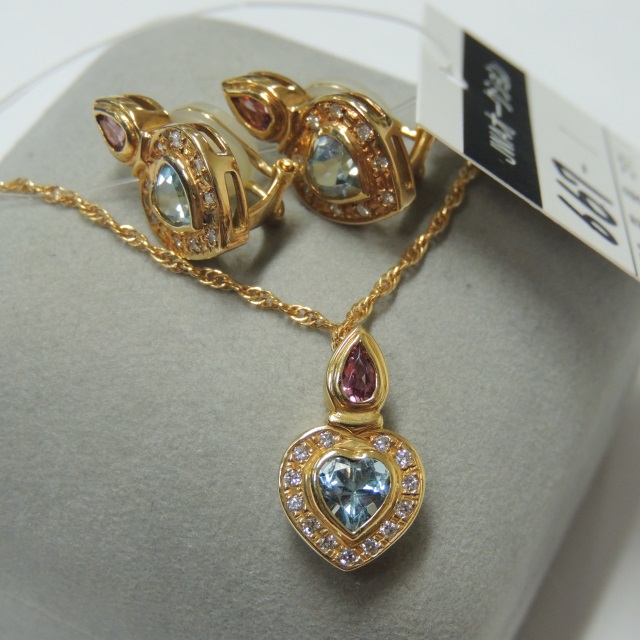 ネックレス イヤリング 2点セット 重量キャッチ含 K18 13.20g 石目:0.15 0.10 0.10