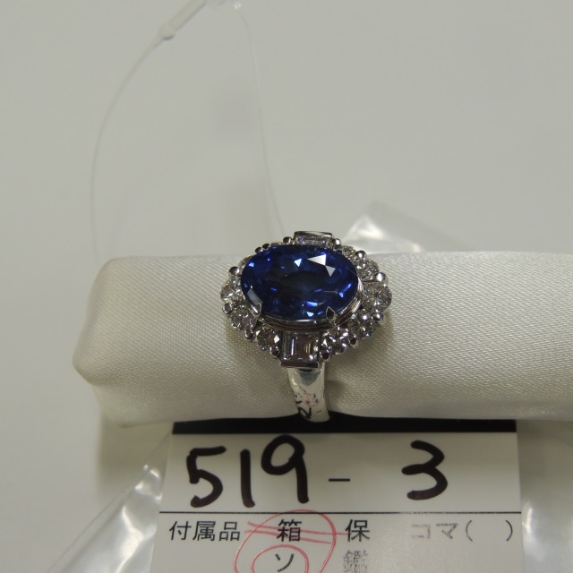 リング サファイア ソーティング書換 Pt900 8.20g 中ソ 石目:3.56 D1.43