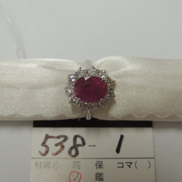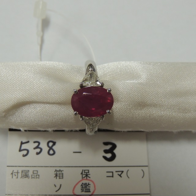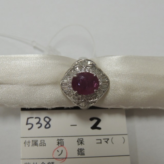 リング ルビー Pt900 8.30g 鑑 石目:R3.63 D0.46
