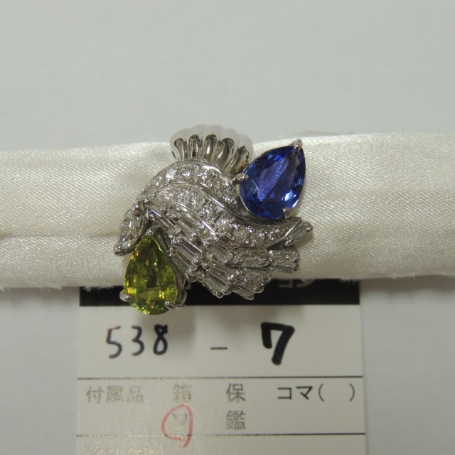 リング スフェーン Pt900 18.20g 鑑 石目:SU2.94 TZ2.53 D1.75