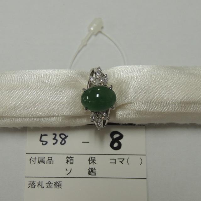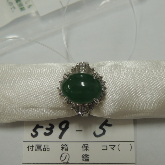 リング ヒスイ ダイヤ Pt900 9.40g 中ソ 石目:J6.72 D0.61