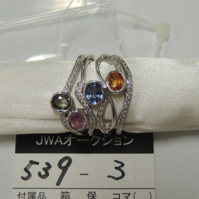 リング サファイア ダイヤ 拡散加熱 1Pメレ落 K18 10.40g 中ソ 石目:2.49 0.35