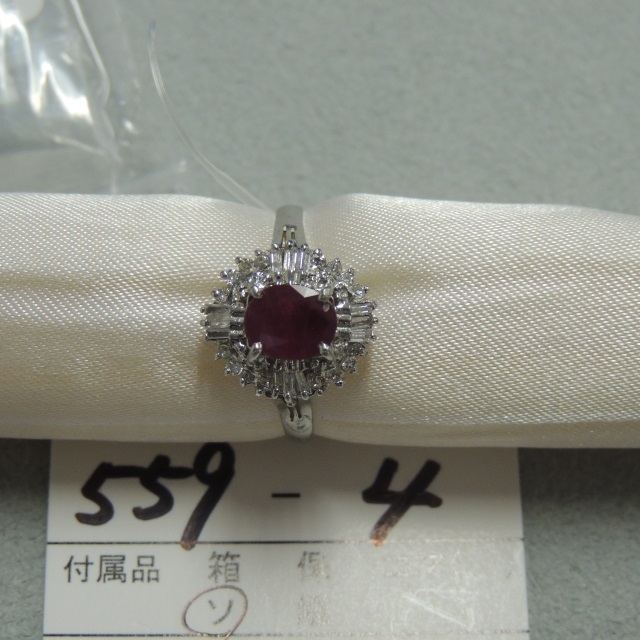 リング ルビー ダイヤ Pt900 4.40g GRJソ 石目:R1.25 D0.29
