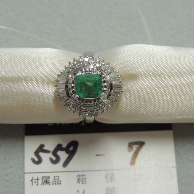 リング エメラルド ダイヤ Pt900 8.10g 石目:E1.22 D0.53