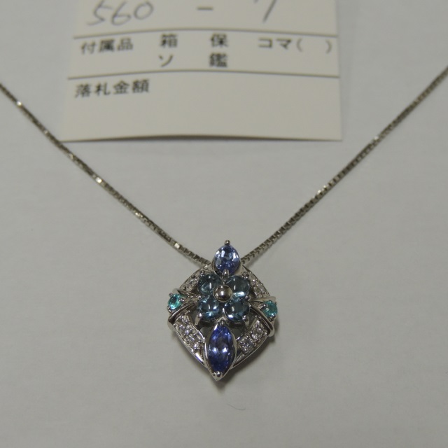 ネックレス Pt900/850 8.30g 石目:D0.10 TG0.05 AQ0.35 ZS0.40