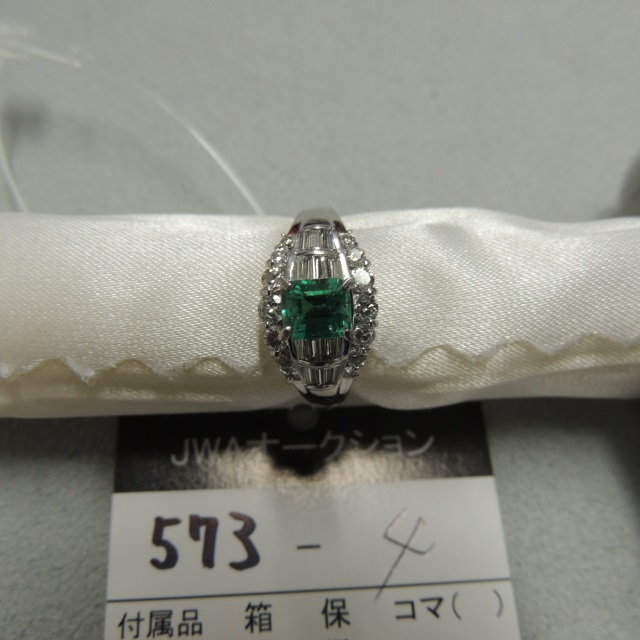 リング エメラルド ダイヤ Pt900 13.00g GRJソ 石目:E3.32 D1.38