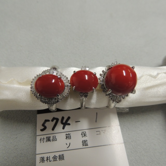 リング サンゴ ダイヤ Pt900 22.90g 石目:0.983