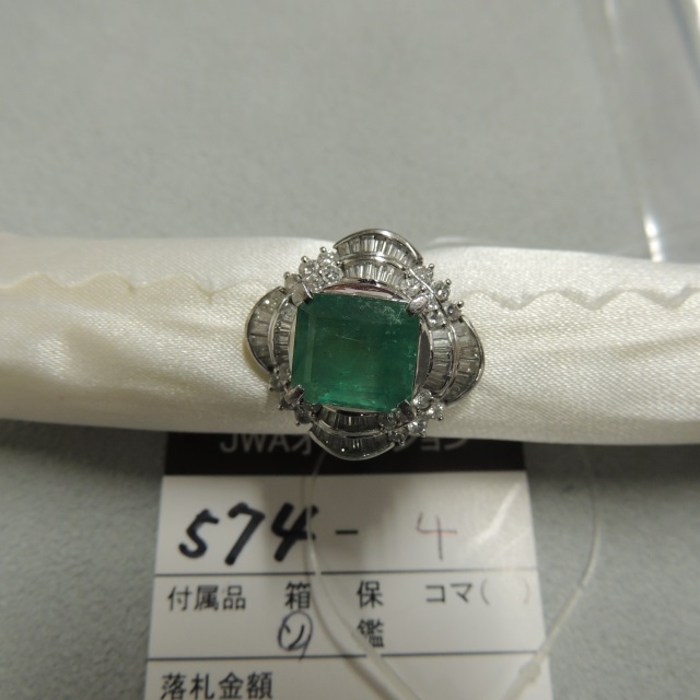 リング エメラルド ダイヤ Pt900 20.10g 石目:E4.24 D3.47