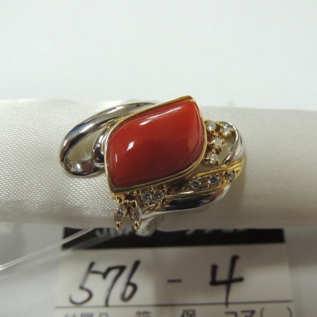 リング サンゴ Pt900/K18YG 13.20g GRJソ 石目:2.90 0.20