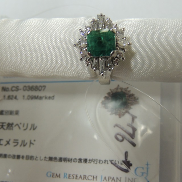 リング エメラルド Pt900 11.30g GRJソ 石目:E1.624 D1.09