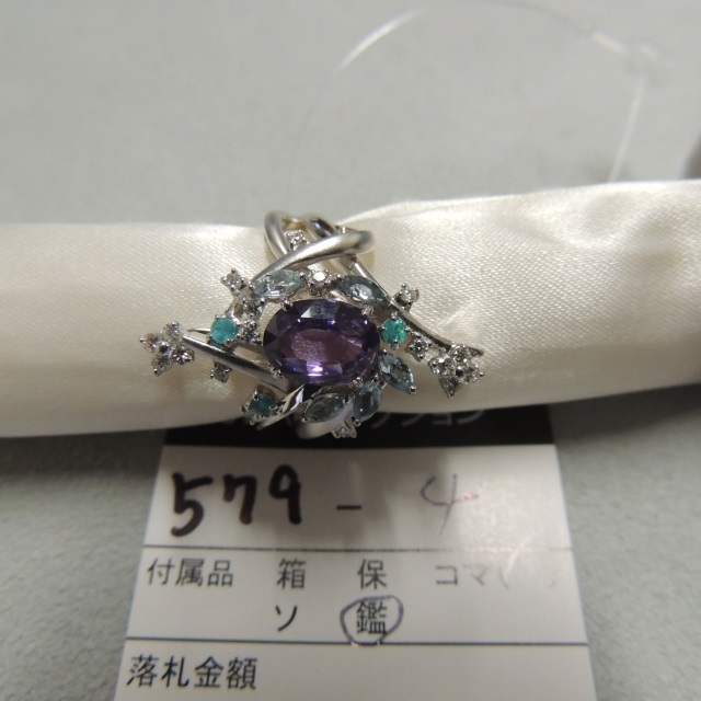 リング パープルサファイア アクア トルマリン ダイヤ Pt950 14.00g 鑑 石目:S2.123 0.41 0.10 0.28