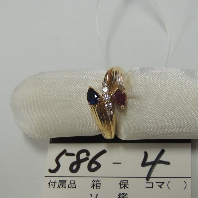リング サファイア ルビー ダイヤ 750 6.10g 石目:S0.19 R0.19 D0.09