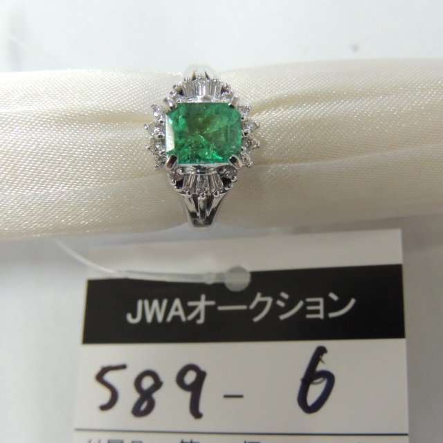 リング エメラルド ダイヤ Pt900 10.90g 石目:E5.87 D0.30