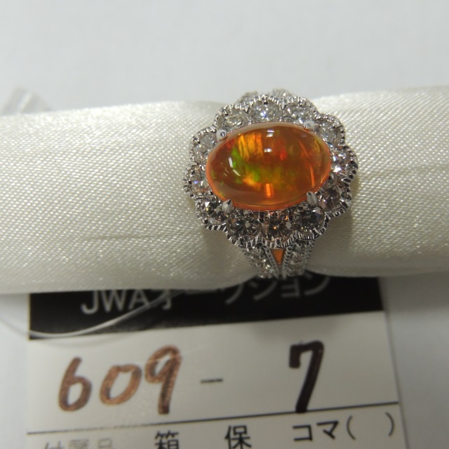 リング ファイヤーオパール ダイヤ Pt900 8.20g 中鑑 石目:S2.83 D1.20