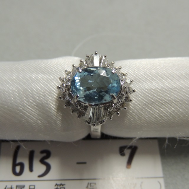 リング アクアマリン ダイヤ Pt900 8.70g GRJソ 石目:AQ2.17 D0.77
