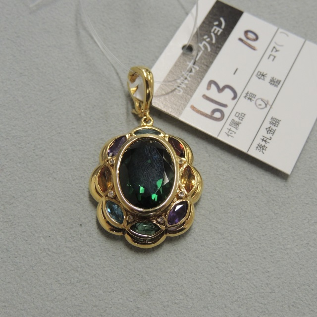 ペントップ 合成グリーンクォーツ ダイヤ マルチ色石 K18 16.70g GRJソ 石目:14.80 D0.06