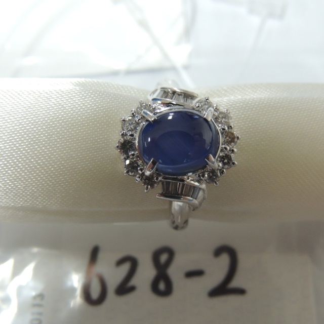 リング スターサファイア ダイヤ Pt900 7.50g 中ソ 石目:S3.38 D0.56