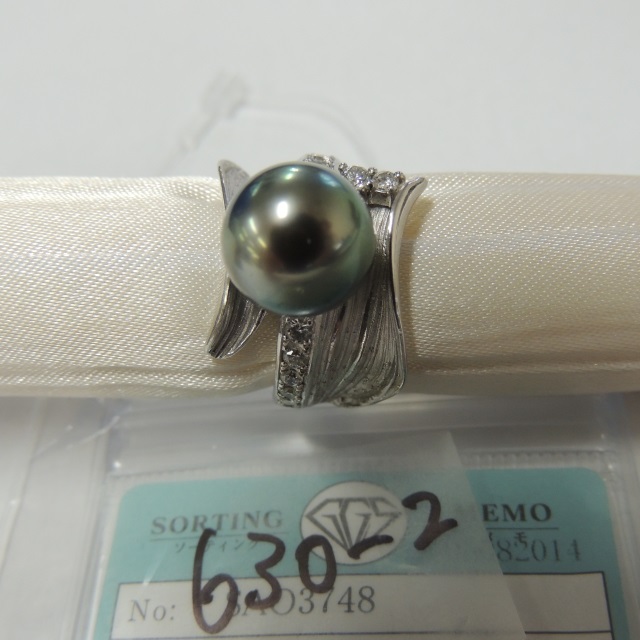リング 黒蝶真珠 11.1mm Pt900 16.80g ソ 石目:D0.48