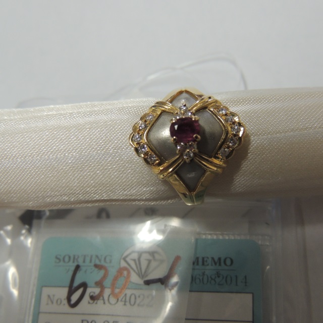 リング ルビー K18/Pt900 8.00g ソ 石目:D0.19 R0.35