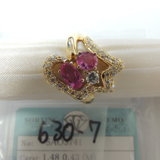 リング ピンクサファイア 石目無しジルコ K18 10.00g ソ 石目: 1.48