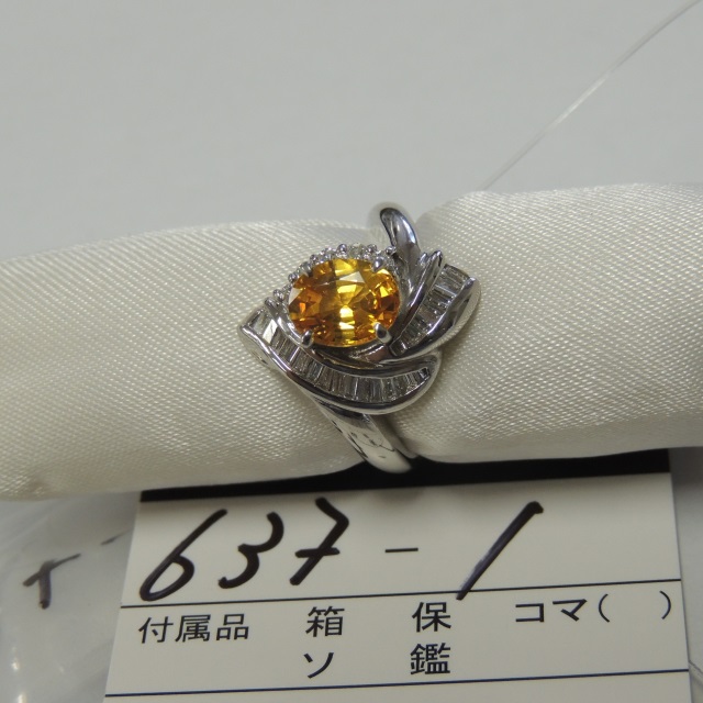 リング ゴールデンサファイア Pt900 7.50g GRJソ 石目:S1.543 D0.50