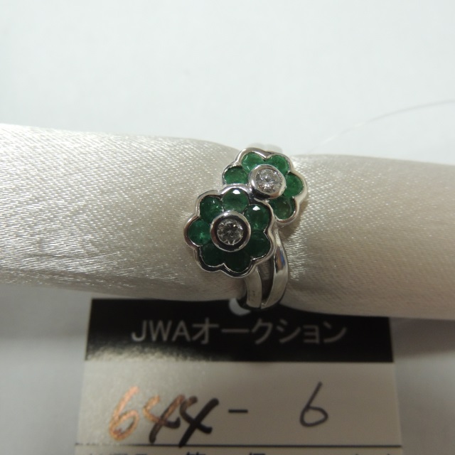 リング エメラルド ダイヤ Pt900 6.40g 石目:E1.08 D0.19