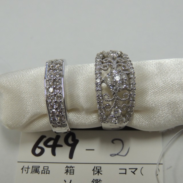 リング ダイヤ 2点山 K18WG 9.00g 石目:0.90 0.40