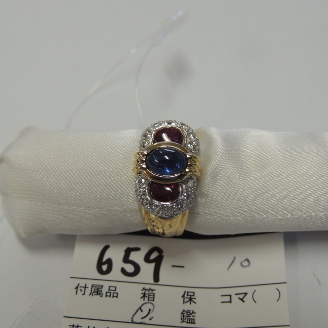 リング サファイア ルビー ダイヤ K18 9.50g 中ソ 石目:S1.32 R0.69 D0.60